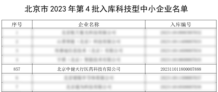 近日,北京市科學(xué)技術(shù)委員會(huì),公布了2023年第四批入庫(kù)“北京市科技型中小企業(yè)”名單,北京中健天行醫(yī)藥科技有限公司再次榮獲北京市科技型中小企業(yè)認(rèn)定,這一殊榮標(biāo)志著我司在研發(fā)申報(bào)科技創(chuàng)新領(lǐng)域取得了顯著的成就,也是對(duì)其不斷努力和創(chuàng)新能力的高度肯定。