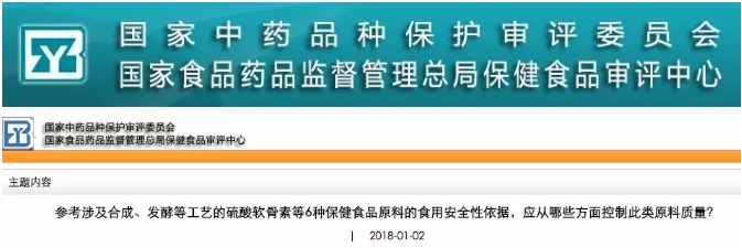 為貫徹執(zhí)行現(xiàn)行技術(shù)審評要求,就近期技術(shù)審評中發(fā)現(xiàn)的無適用國家標(biāo)準(zhǔn)、地方標(biāo)準(zhǔn)、行業(yè)標(biāo)準(zhǔn)的涉及合成、發(fā)酵等工藝生產(chǎn)的硫酸軟骨素等6種保健食品原料,我中心組織專家咨詢會,對注冊申請人提交的這些工藝條件下食用安全性依據(jù)及質(zhì)量控制要求進行了研討。現(xiàn)將相關(guān)情況發(fā)布如下,供保健食品注冊申請時參考。