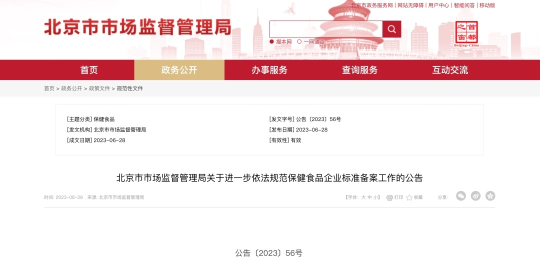 為進(jìn)一步依法規(guī)范本市保健食品企業(yè)標(biāo)準(zhǔn)備案工作,依據(jù)《中華人民共和國(guó)食品安全法》《中華人民共和國(guó)食品安全法實(shí)施條例》等規(guī)定,現(xiàn)就北京市保健食品企業(yè)標(biāo)準(zhǔn)備案工作有關(guān)事項(xiàng)公告如下: