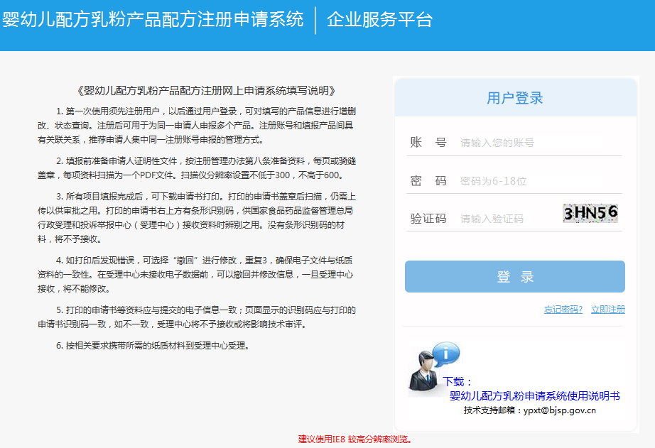 嬰幼兒配方乳粉產(chǎn)品配方注冊(cè)申請(qǐng)系統(tǒng):http://?http://yp.zybh.gov.cn/yezcww/login/loginAction!login.dhtml